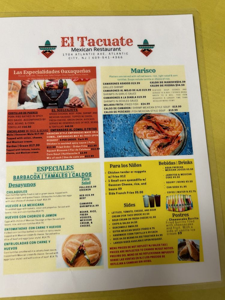 Welcome to El Taquate Mexican Restaurant, a hidden gem located at 1704 Atlantic Ave, Atlantic City. This unclaimed culinary spot specializes in authentic Mexican fare, perfect for both takeout and delivery. Indulge in their Burrito Supremo, a flavorful smothered delight, or savor the crunch of Nachos layered with fresh ingredients and your choice of protein.